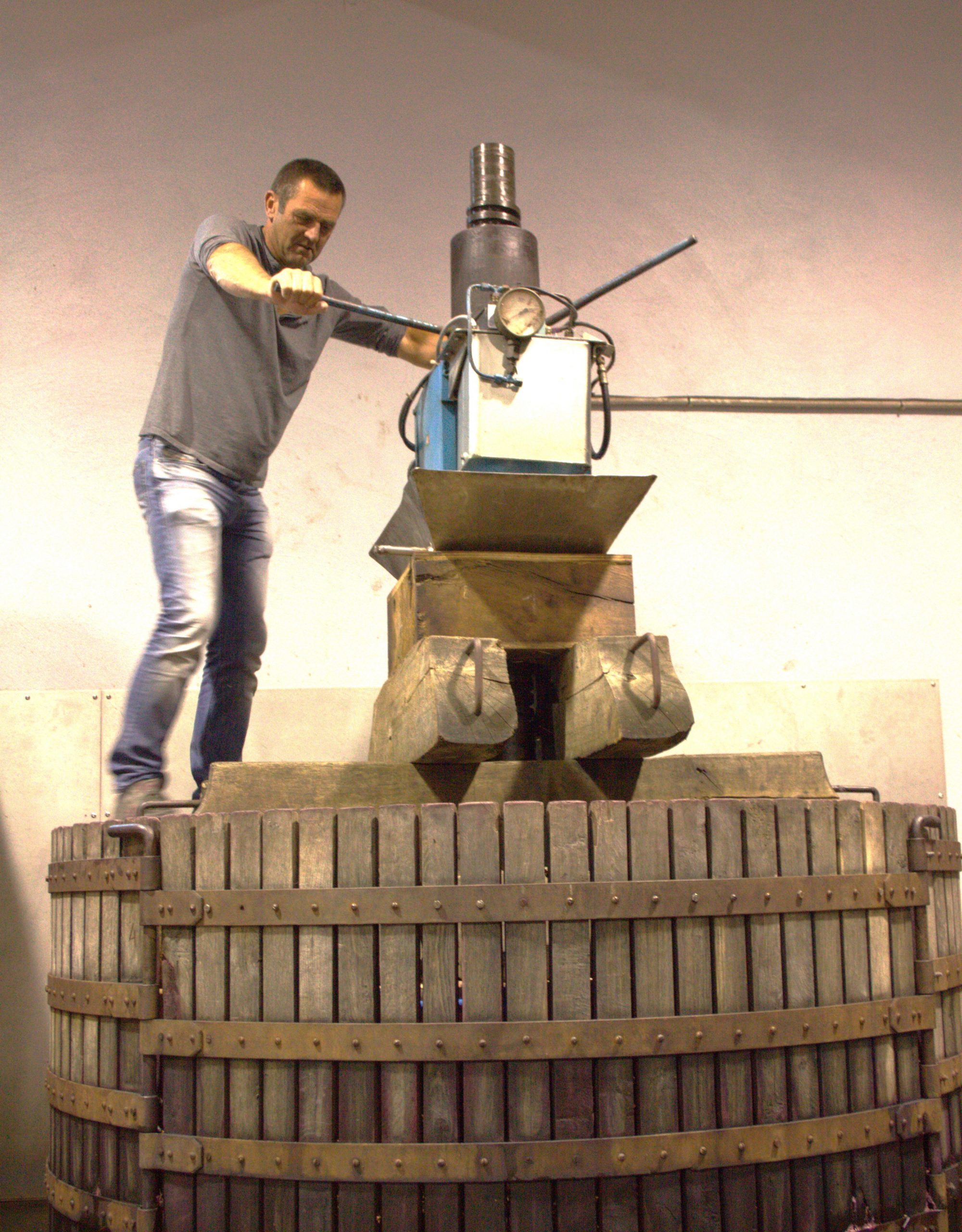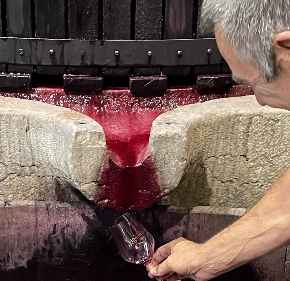 私は、この蔵で、プレス機にかけて“Paradisパラディ”と呼ばれる今年の初絞りのプレス液をテースティングするのが最高の楽しみにしている。予想通りにすでにプレスを開始していたのだった。