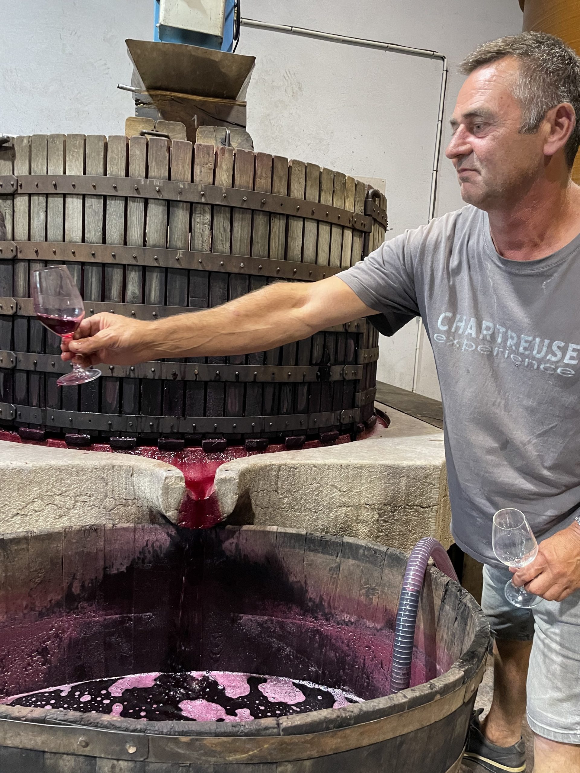 垂直式の大型プレス機の横に陣取って、ジャンクロードと話しながらこのパラディを飲むことができることに、最高の幸せを感じる。
