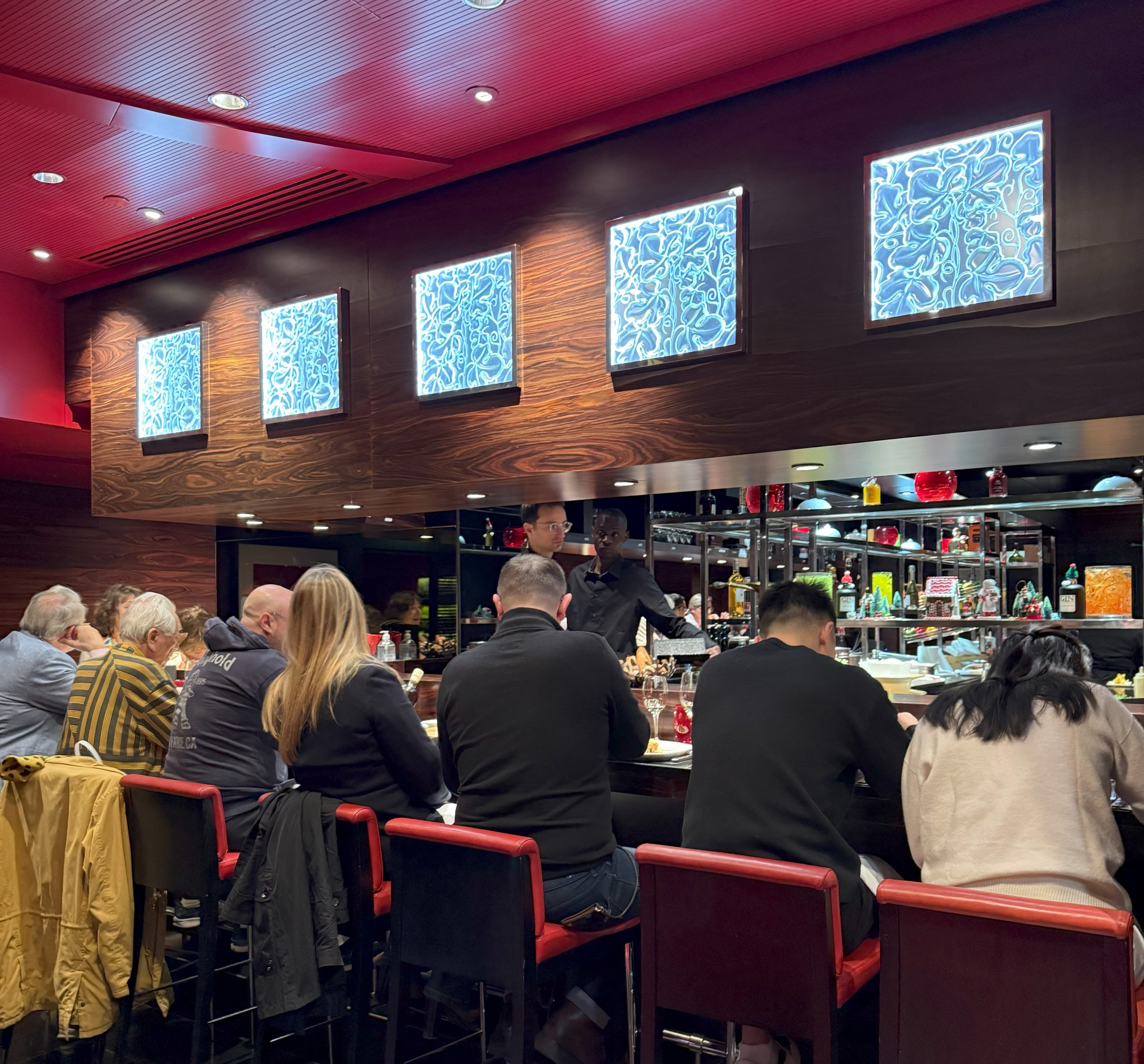 赤と黒の内装でシックな感じでした。