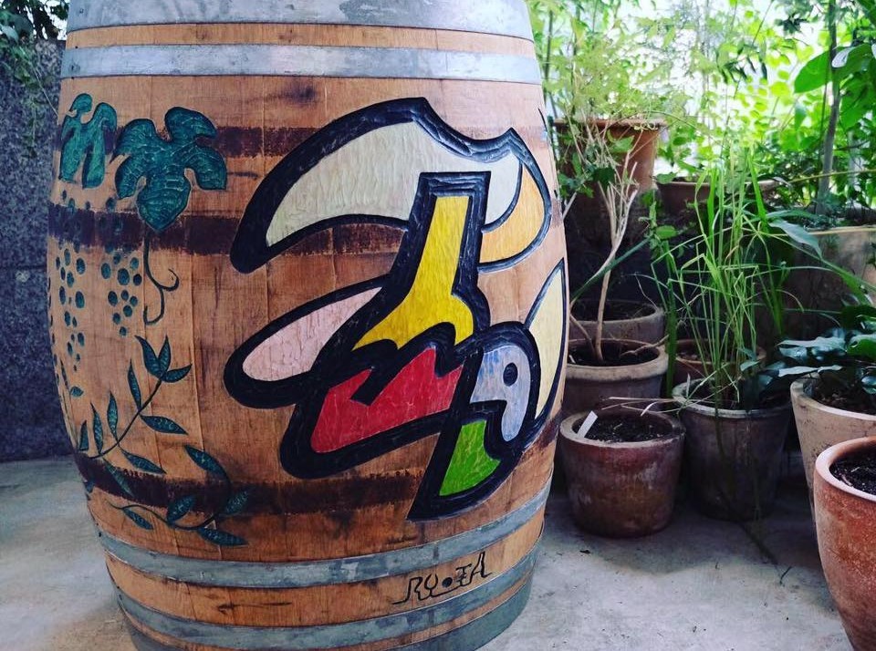 13年にフランスにやって来て、数え切れない樽アートを施して、一旦日本に戻り、オーストラリアに渡り樽アートを残して、現在は九州の佐賀にアトリエを移してアートを続けている。