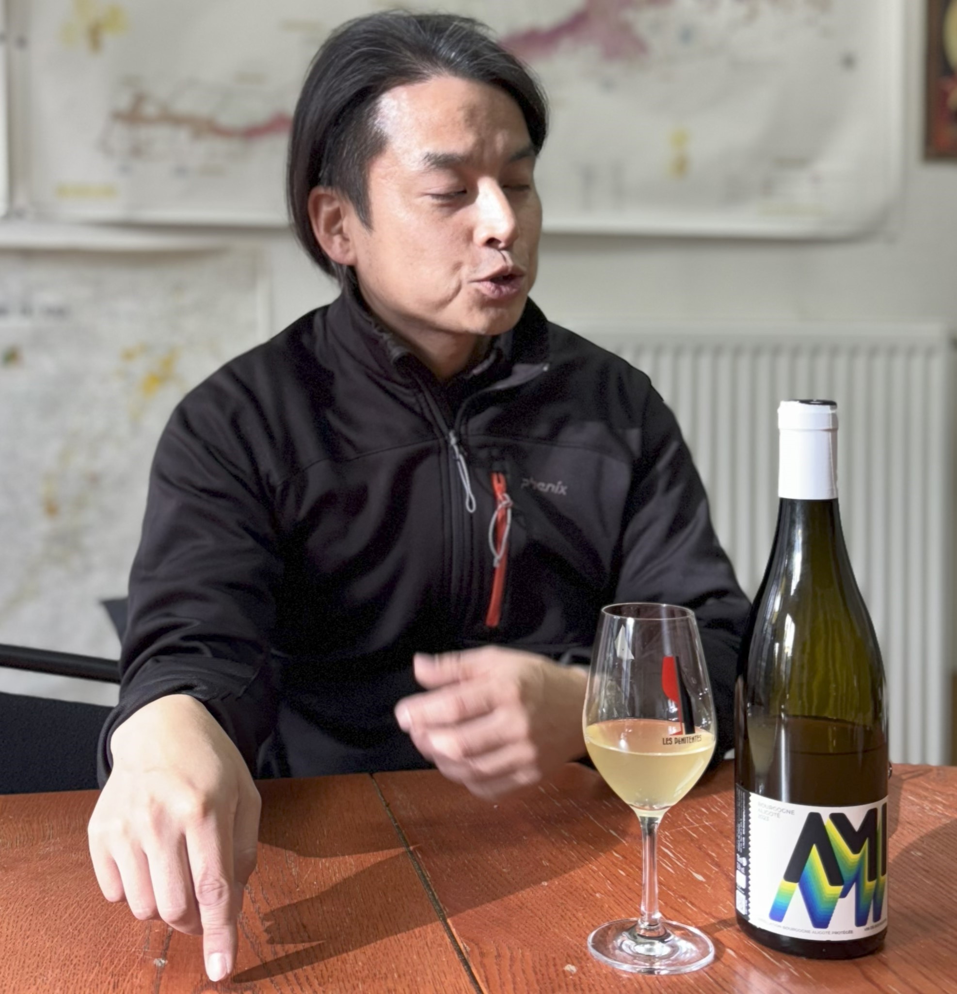 昼頃、オフィスに寄って頂き、アペロにブルゴーニュの今勢いのあるAMIアミ醸造のアリゴテをやりました。