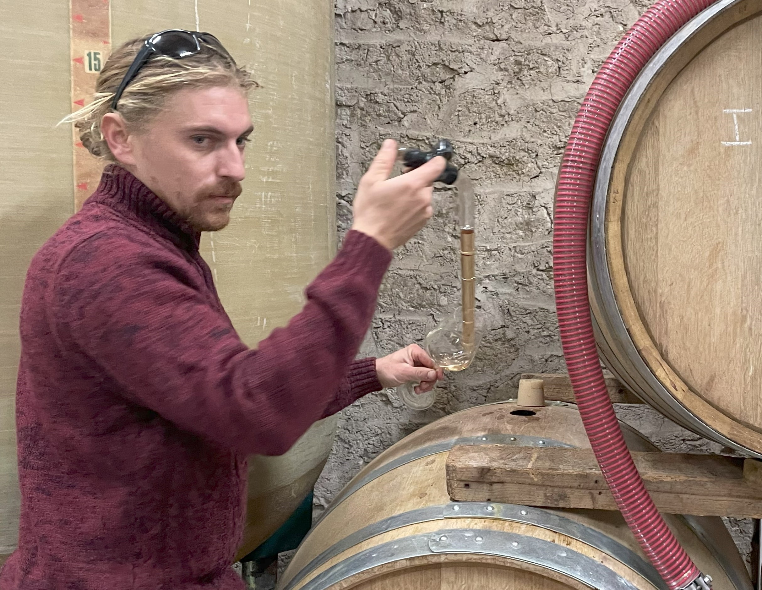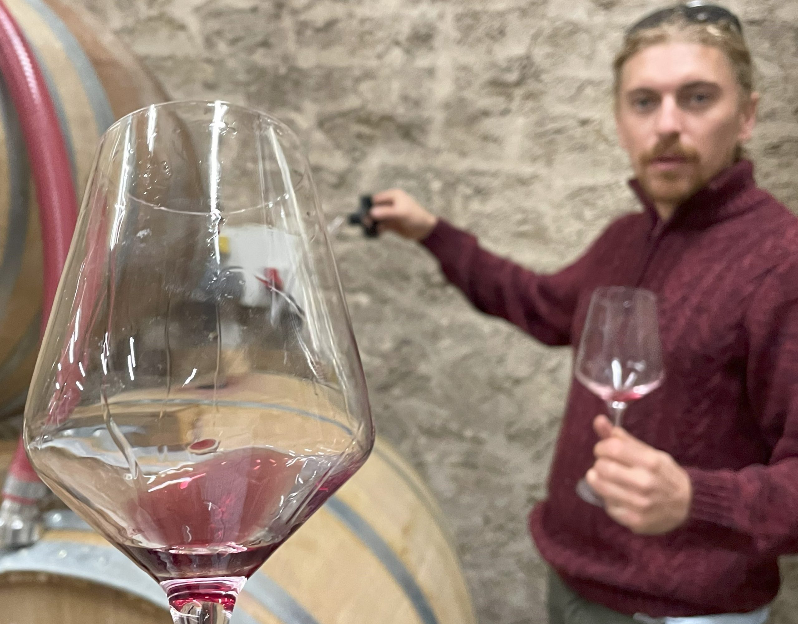 さて、折角なので23年ミレジムを、熟成中の樽やキューヴから試飲させてもらった。