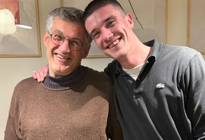 Parisでは11月は毎週月曜日に、3か所ほどで試飲会を開催している。 ワイン造り手達が、今、どんな状況の中で、どんなスタイルを目指してワイン造りをしているのか? 微妙に変化を続けるVin Nature業界の流れを知っておくことは大切。 OENOのメンバーは、ほぼすべての試飲会、見本市に参加している。 今日は、レストランを借り切って行われている試飲会にやって来た。 新しい醸造家もいくつかいたけど、やはりベテランの味には感動する。ものがある。 ブー・ド・モンド醸造のエドワード・ラフィットが、いつもの笑で迎えてくれた。 今日は息子のマリウスと一緒だった。 やっぱりベテランの技が生きている、 1-L’ECHAPPE BELLE レシャップ・ベル これは感動の美味しさ!! シラー品種40%、グルナッシュ60% 、果実味が豊な除梗なしのマセラッション・カルボニック醸造。 標高の高い花崗岩土壌からくる爽やかさを含んだミネラル感が、素晴らしい!! しかも、ここの葡萄園は標高の高い山の上、夢のような絶景が見える立地。 2―HOP LA オップラ “オップラ“は、重いものを持ち上げる時の掛け声、日本式に言えば“ドッコイショ!”の意。 これまた、標高の高い葡萄園でグネス土壌のテロワール、グネスは、ややシストに似て涼しいミネラル感がある。 やさしい果実味を表現する為にトロンコニック型の大樽でマセラッション・カルボニック醸造を実施。 スーッと入るスタイルにしたくて、ピジャージなどは一切しないで、お茶やアンフュージョンのようにやさしく葡萄の要 素を抽出した。 フィネスを感じさせるフルーティーなスタイル。エドワードの技術が生きている。 エドワアードは、若き頃、ローヌのエステザルグ農協で働いていた。 当時の醸造長は、ジャン・フランソワ・ニックが醸造長だった。(現在フラール・ルージュ醸造) あのニックからマンツーマンでセミ・マセラッション・カルボニック醸造を伝授してもっらたのである。 醸造技術といい、この美しい標高の高い素晴らしいテロワール、といい、美味しいワインが出来る条件が揃っている。 Bout du Monde ブー・ドゥ・モンド醸造のワインは、すべて感動的な美味しさを備えている!! (ブー・ド・モンド醸造のワインの問い合わせは、サンフォニー社です。)