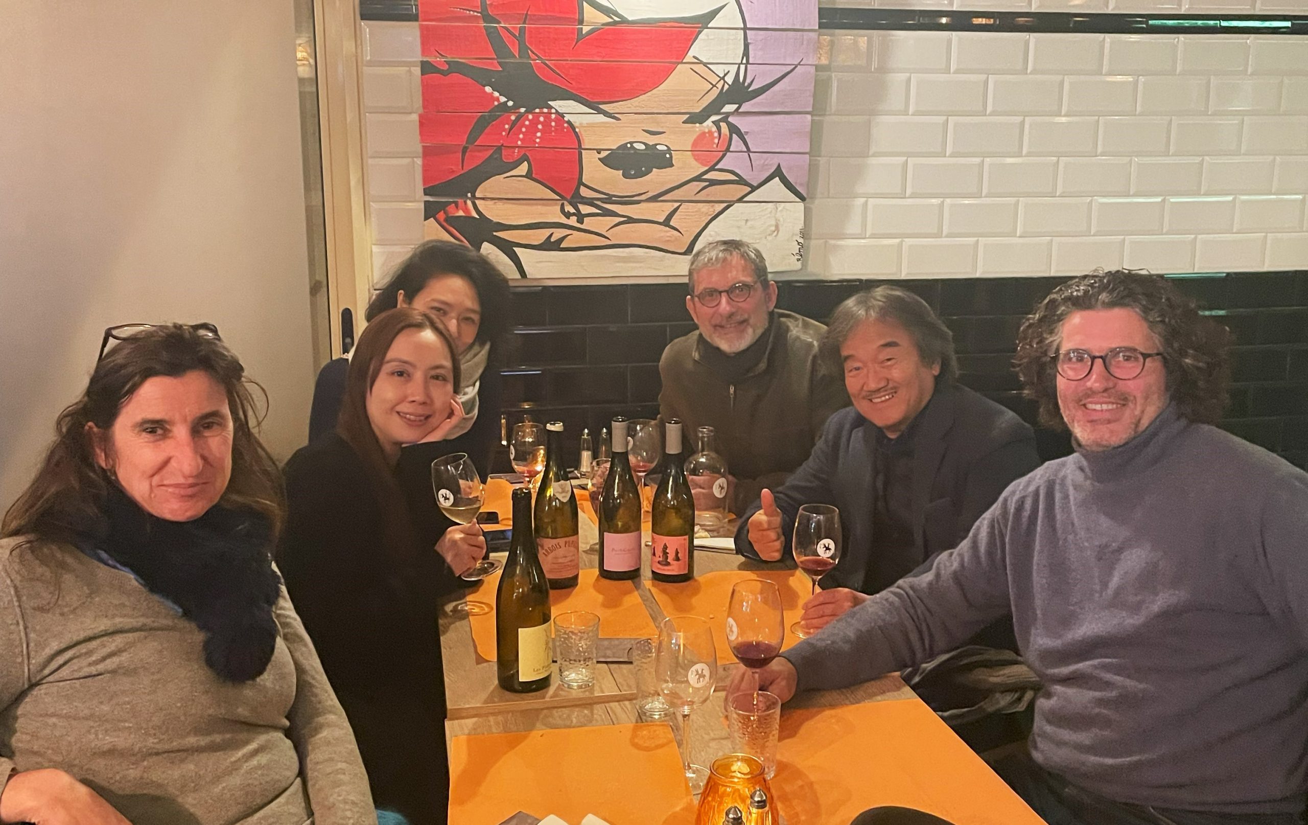 台湾のインポーターのレベッカと造り手のティエリー夫婦とテーブル囲んだ。