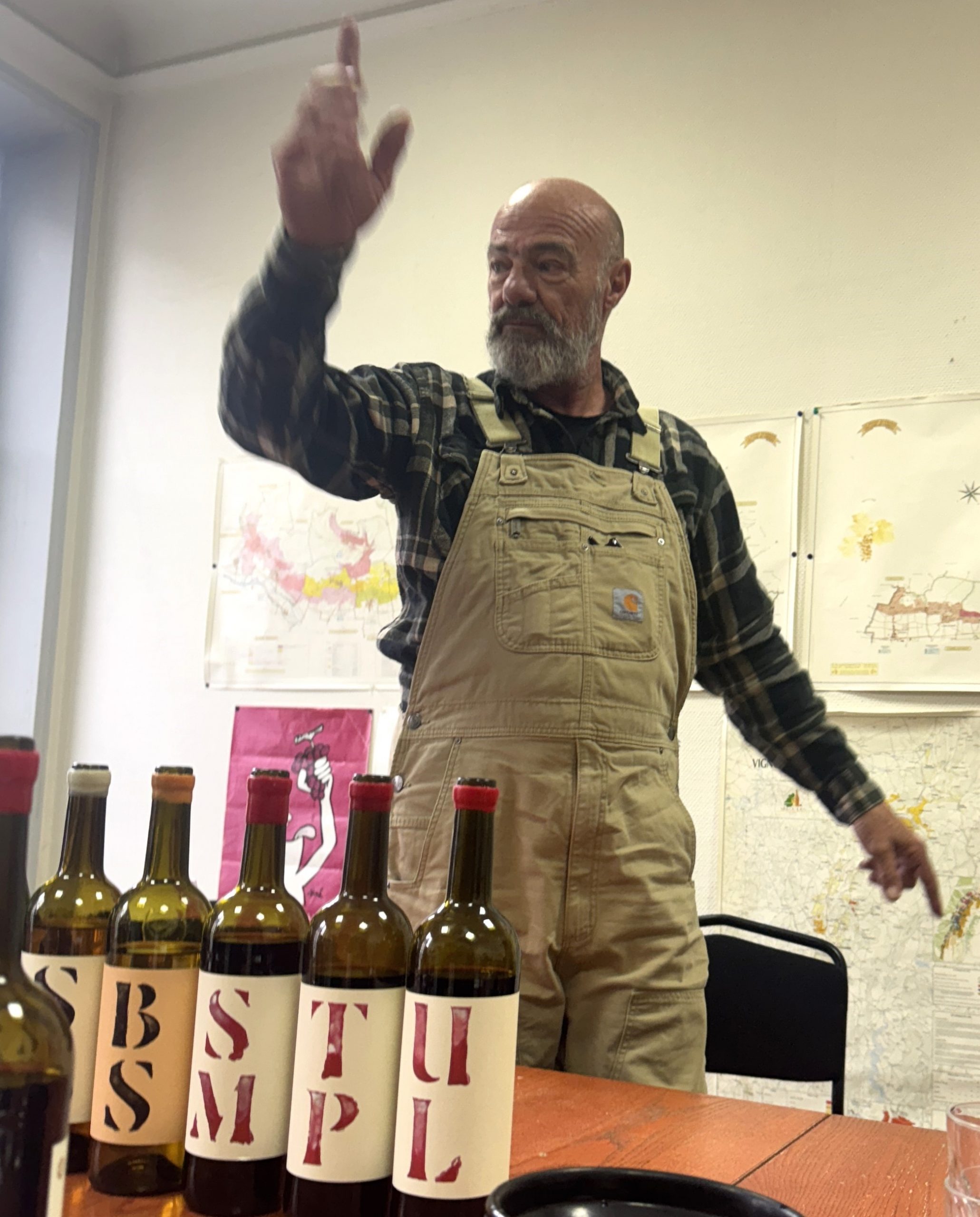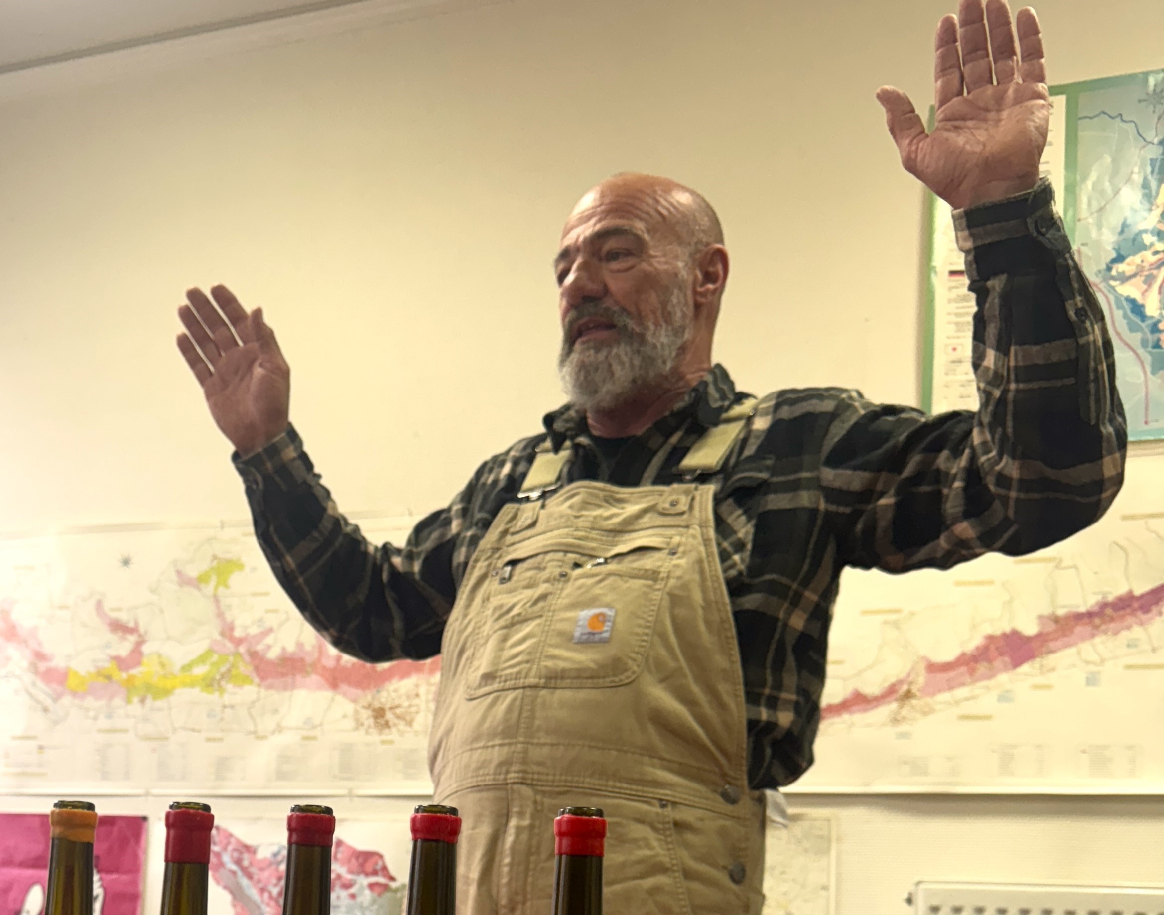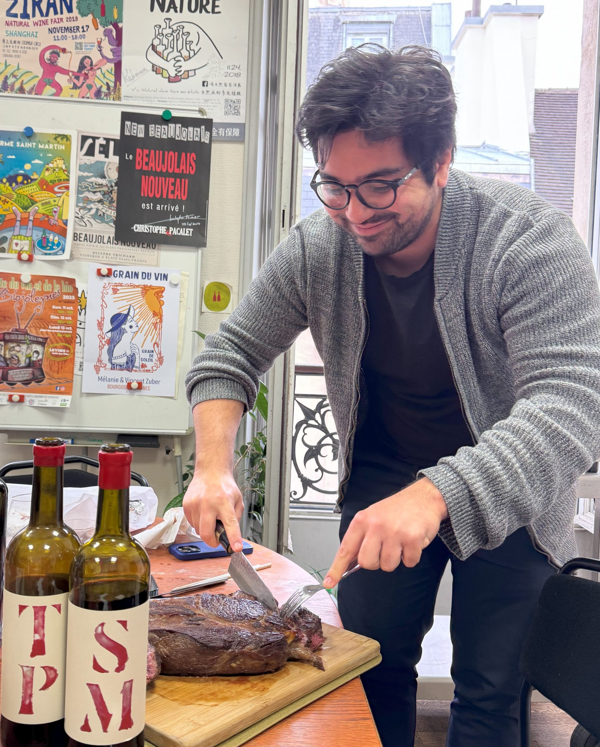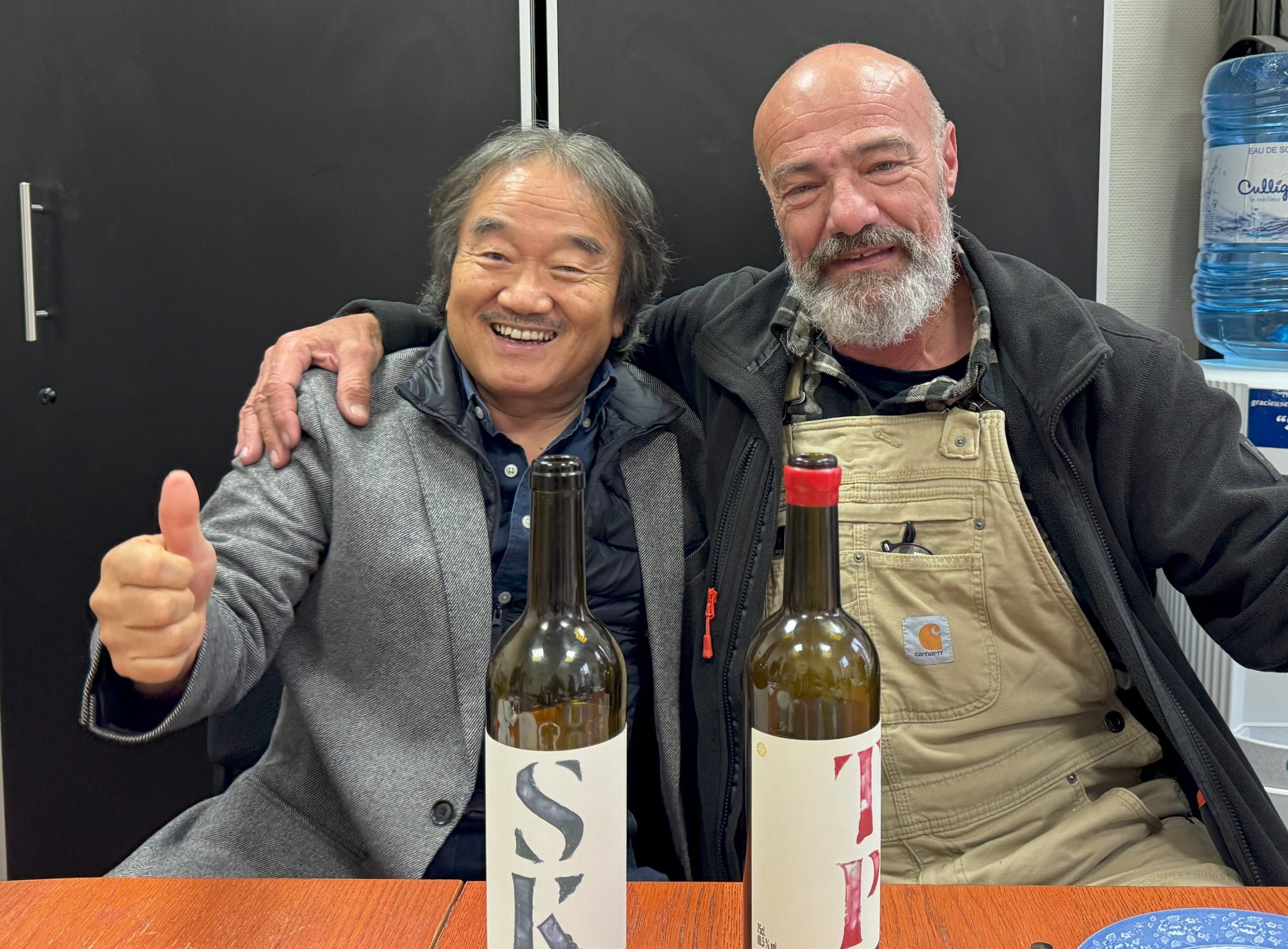 明るいバルセロナの南にあるパルティーダ・クルーズ醸造のマッシモが、ワインを抱えてParisオフィスにやって来た。