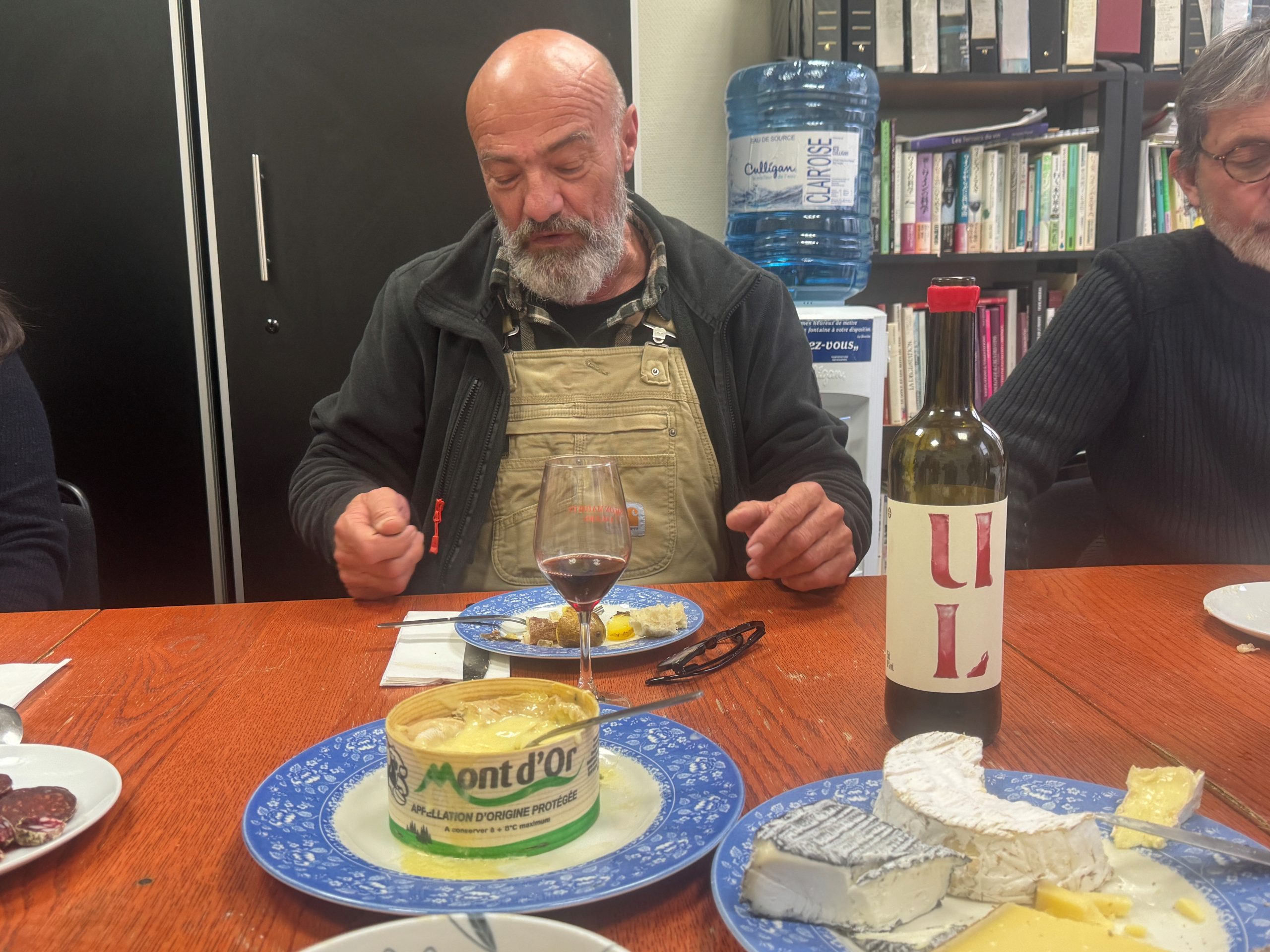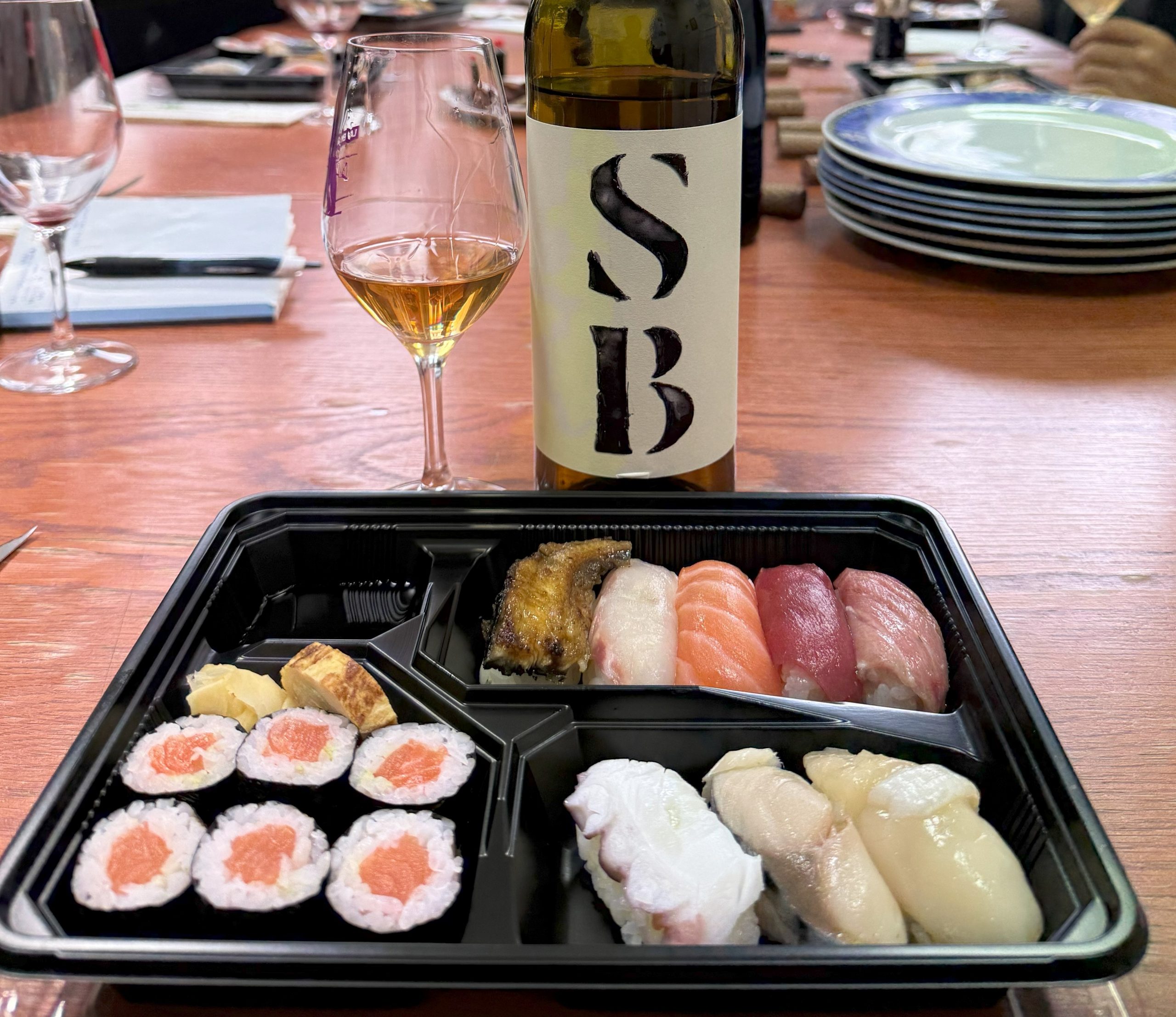 試飲の後は、お鮨、美味しい肉を焼きました。そして、今が旬のモンドール・チーズを食べました。