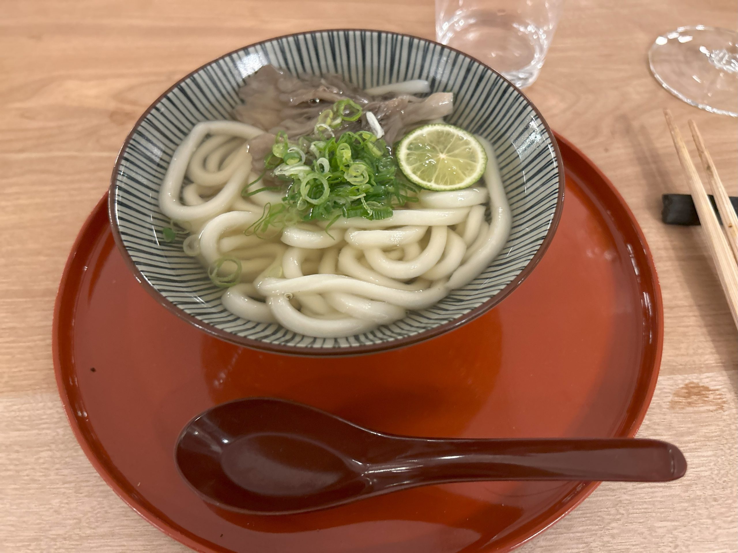 土佐出身の野本シェフのうどんは天下一品である。土佐カツオ仕込みのだしの“Umami旨味”がきいた汁がたまらない。