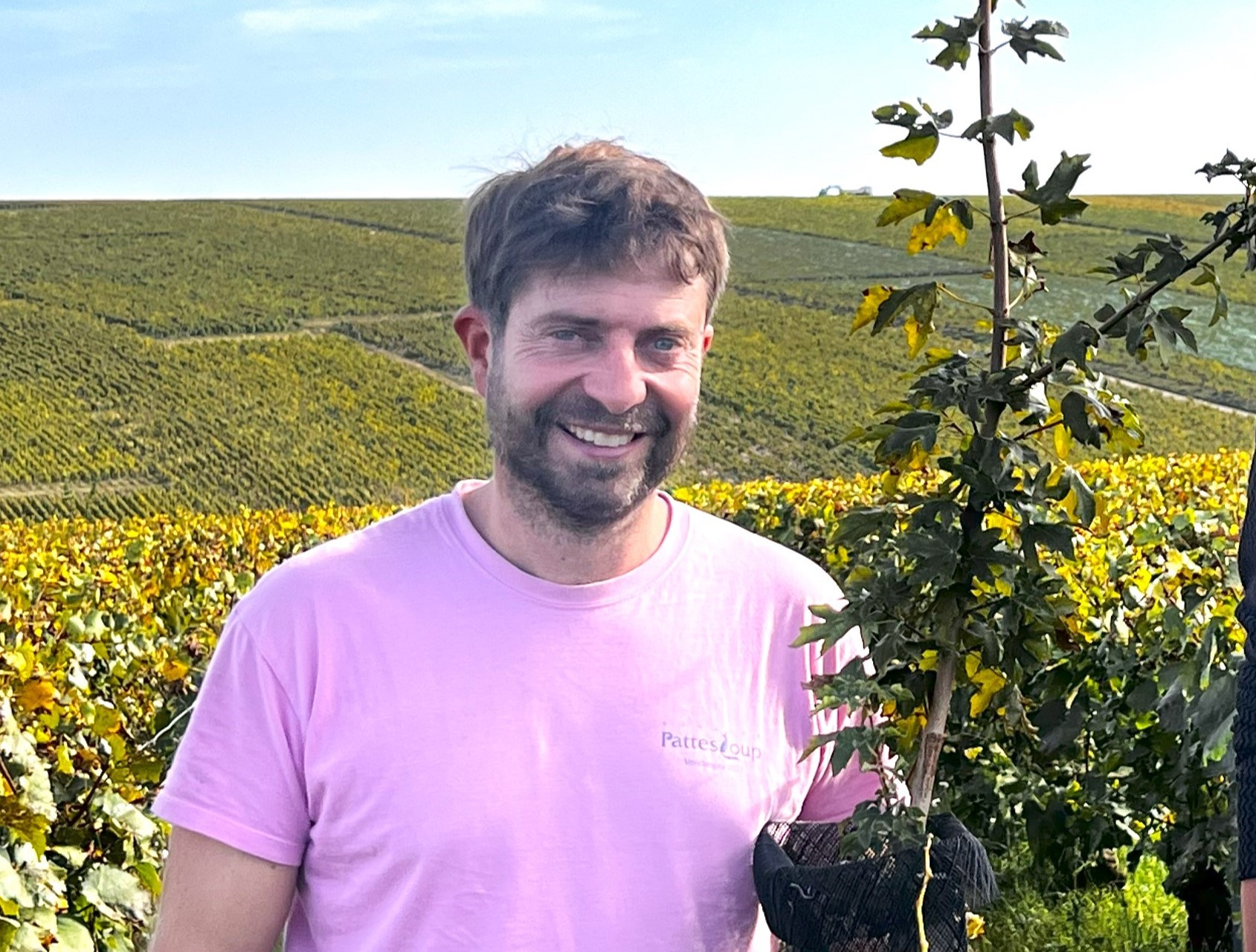 木々が少ないシャブリの畑、鳥や昆虫を呼びもどす為に、葡萄木を抜いて180本の色んな種類の木を植えている。